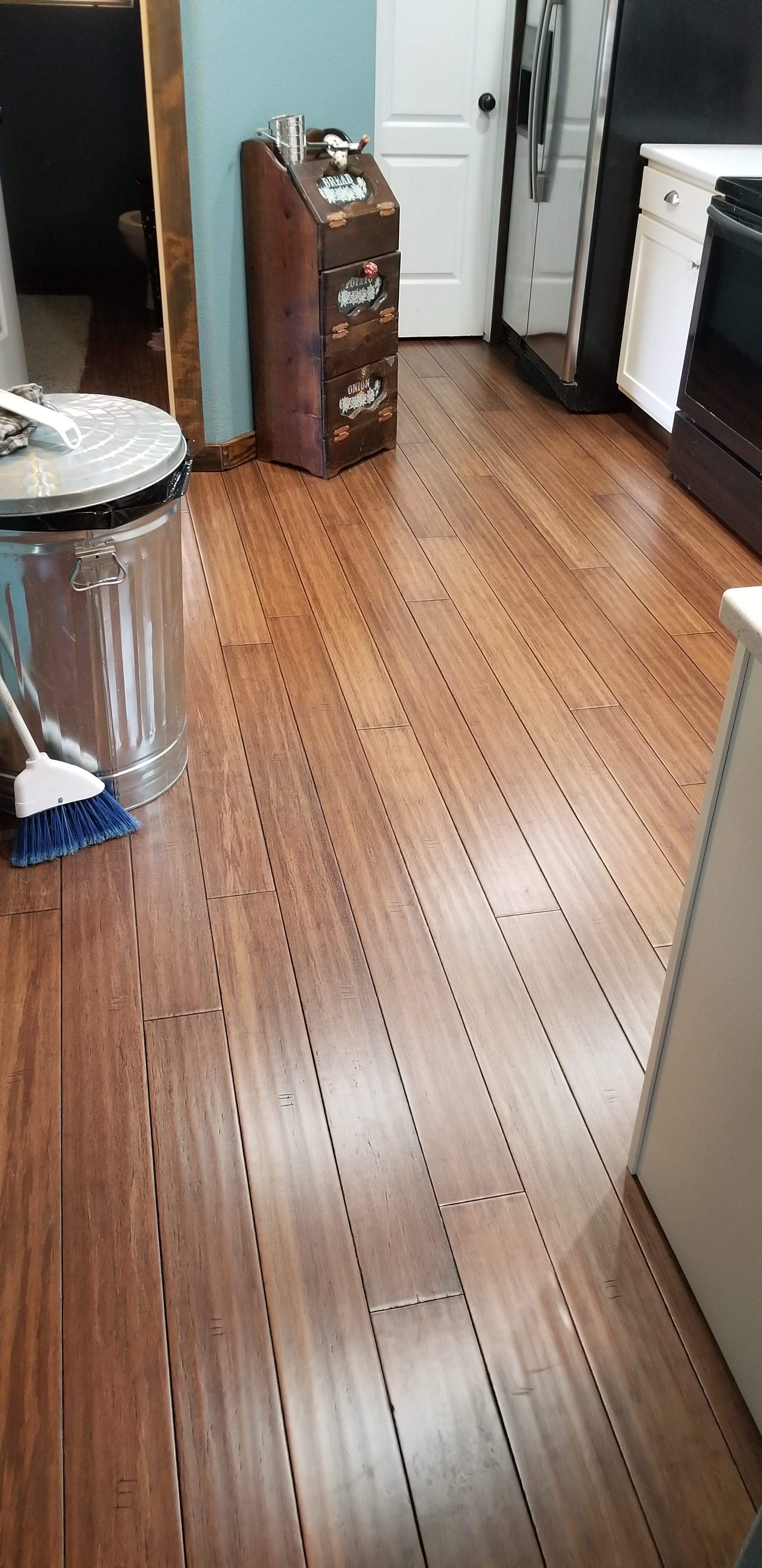 New bamboo flooring in the kitchen matched up almost perfectly with the existing floor from the rest of the house. The color was a little different, and even the flooring thickness wasn’t quite the same, but we were able to match the seams up so closely that you can’t even tell!