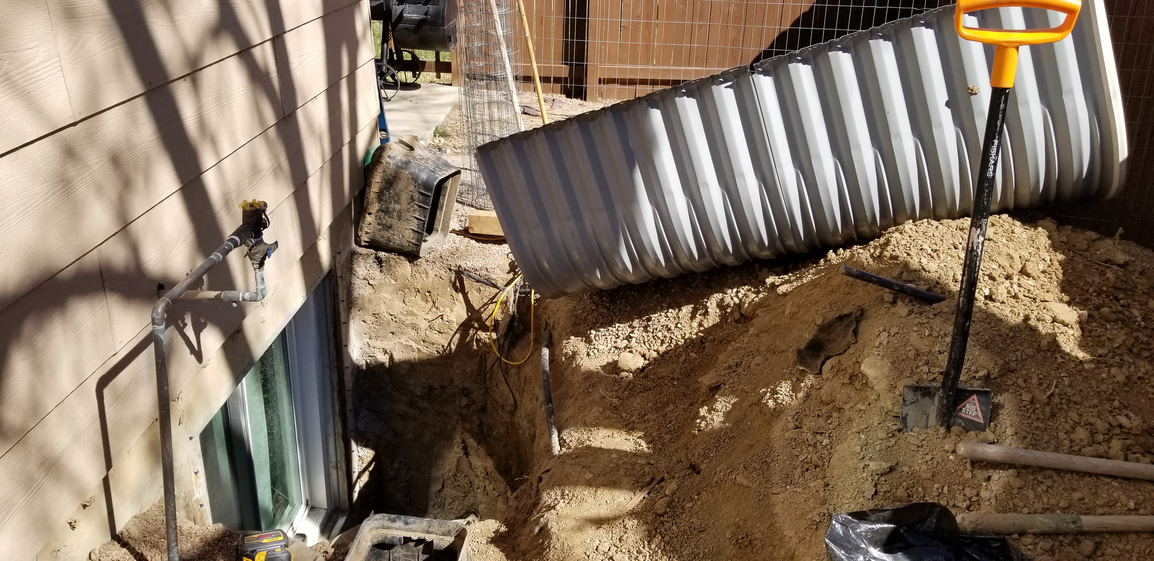 Window wells cans be damaged for a number of reasons, these ones had an anchor point that came into contact with the rebar in the foundation causing it to ground out and rust. In order to prevent these wells from filling up with water again, a gravel drain was dug in the center to allow …